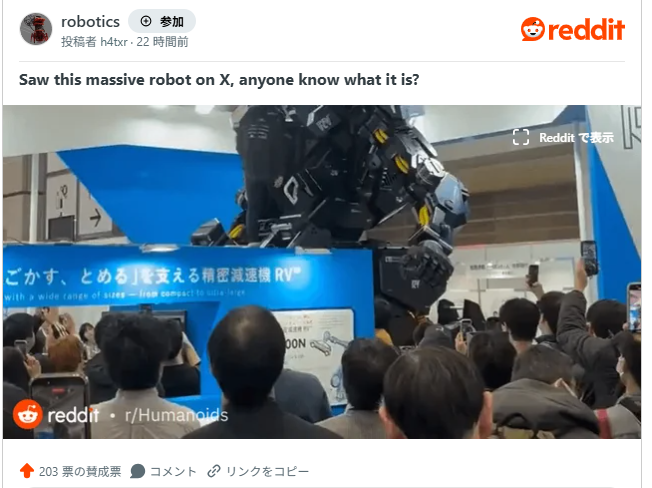 翻訳:Xでこの巨大ロボットを見たんだけど、これ何?