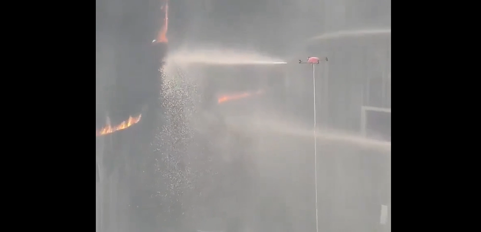 中国の消防ドローンだな。地上からでは手が届かない超高層ビルの火災に対して、ホースを吊り下げて自律飛行しながら消火する。まさに『命を守るためのテクノロジー』の具現化と言えるな
