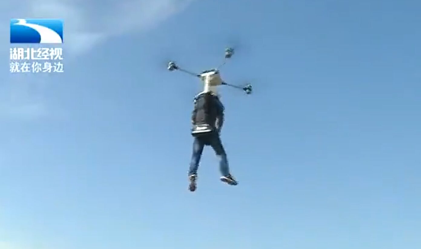 中国・武漢で、男性が自作した飛行器で空を飛ぶ映像が注目を集めています。