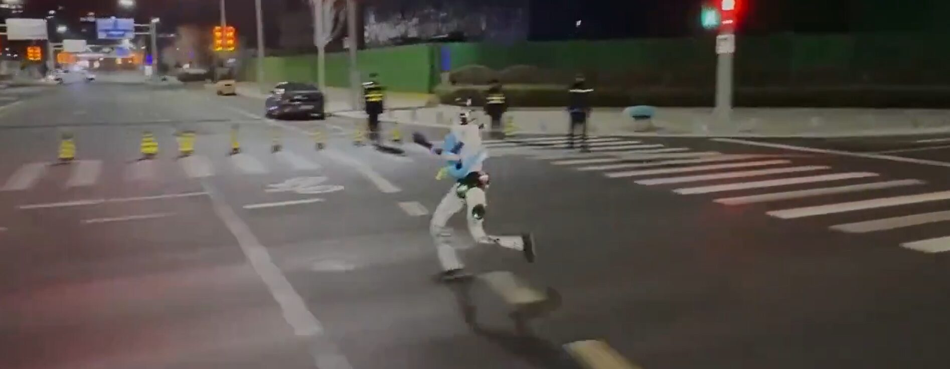 @これは本当に未来的だ。北京の深夜、ヒューマノイドロボットたちが1か月後のマラソンに向けて、街中で懸命にトレーニングしている。