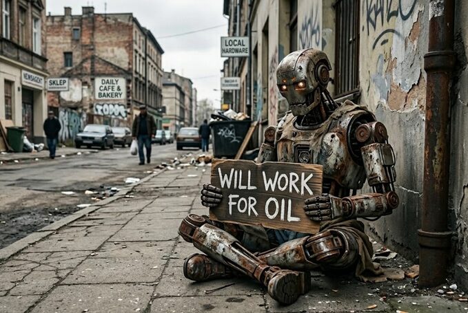 ロボットまで物乞いし始めたとなると、機械ですら仕事の圧迫を感じてるってことだな