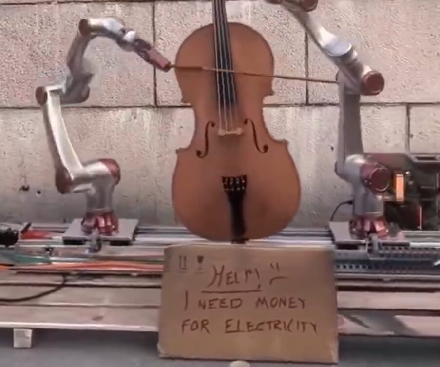ロボットが路上でチェロ弾いてお金集めてるって絵面が強すぎるね